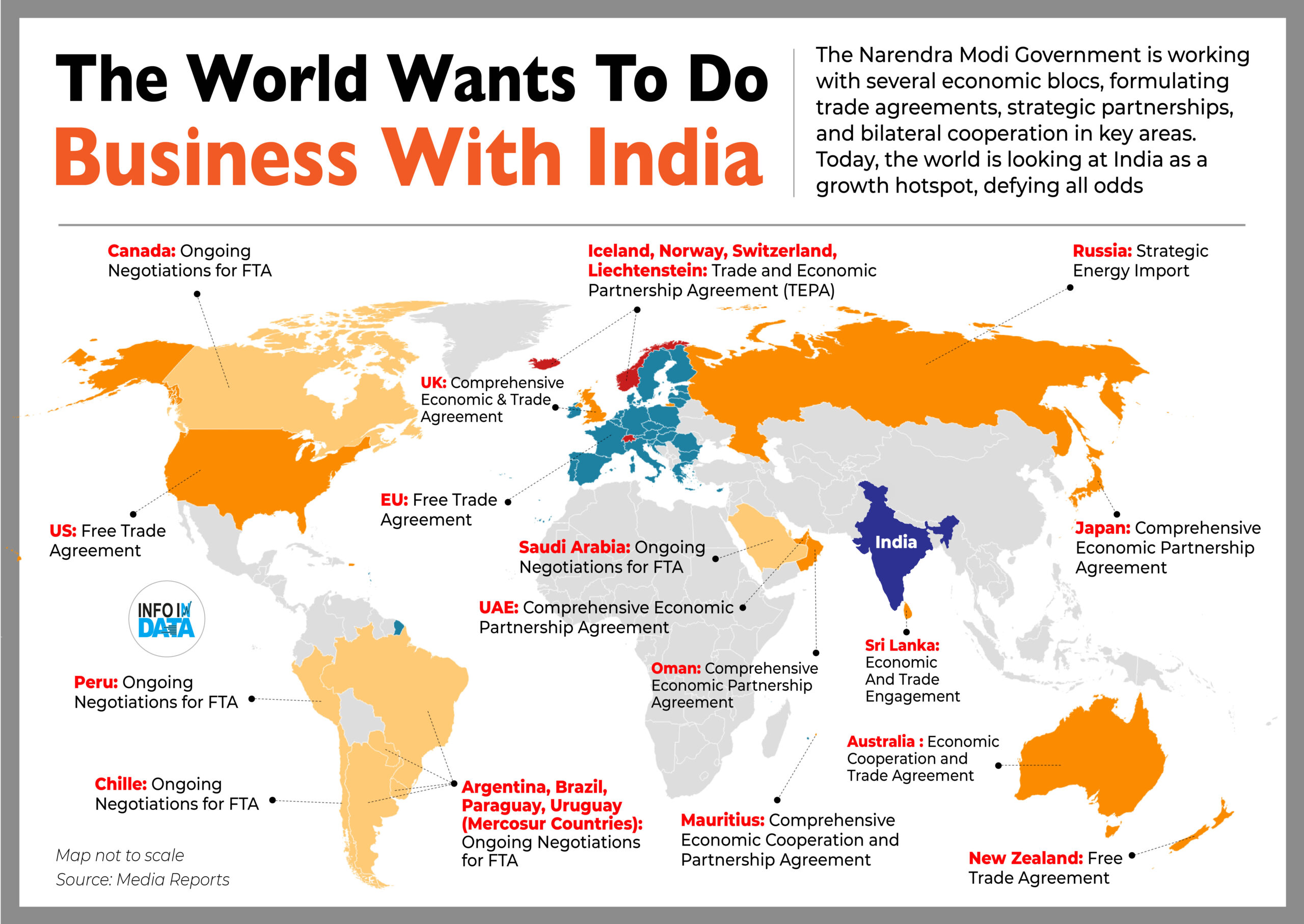 - Europe & Anglo-Sphere: Despite differences between the UK and the EU, both have signed FTAs with India.