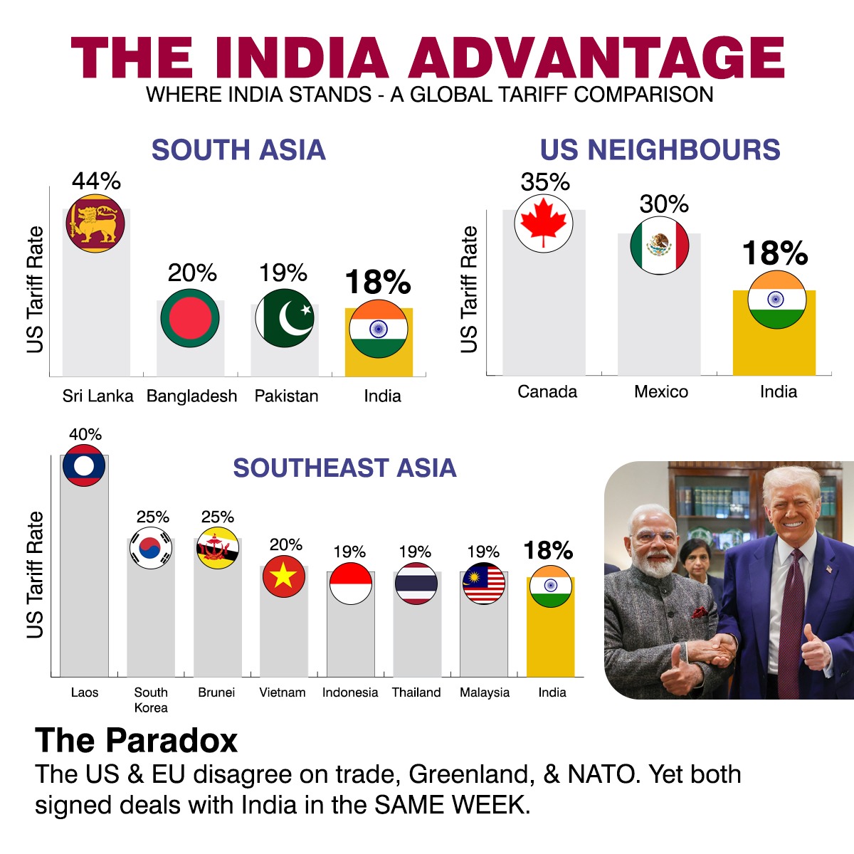 India walked in as a partner and walked out with the most favourable number in the room. Better than countries that have been trading with America for generations. Countries with military alliances, NATO memberships, decades of history on that table.