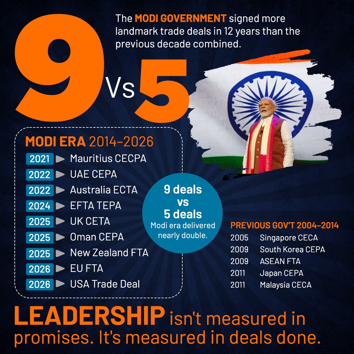 The scorecard tells the story before a single word of explanation is needed. Nine deals in twelve years under Prime Minister Modi. Five deals in the ten years before that. Nearly double. And the gap is not just in the numbers.